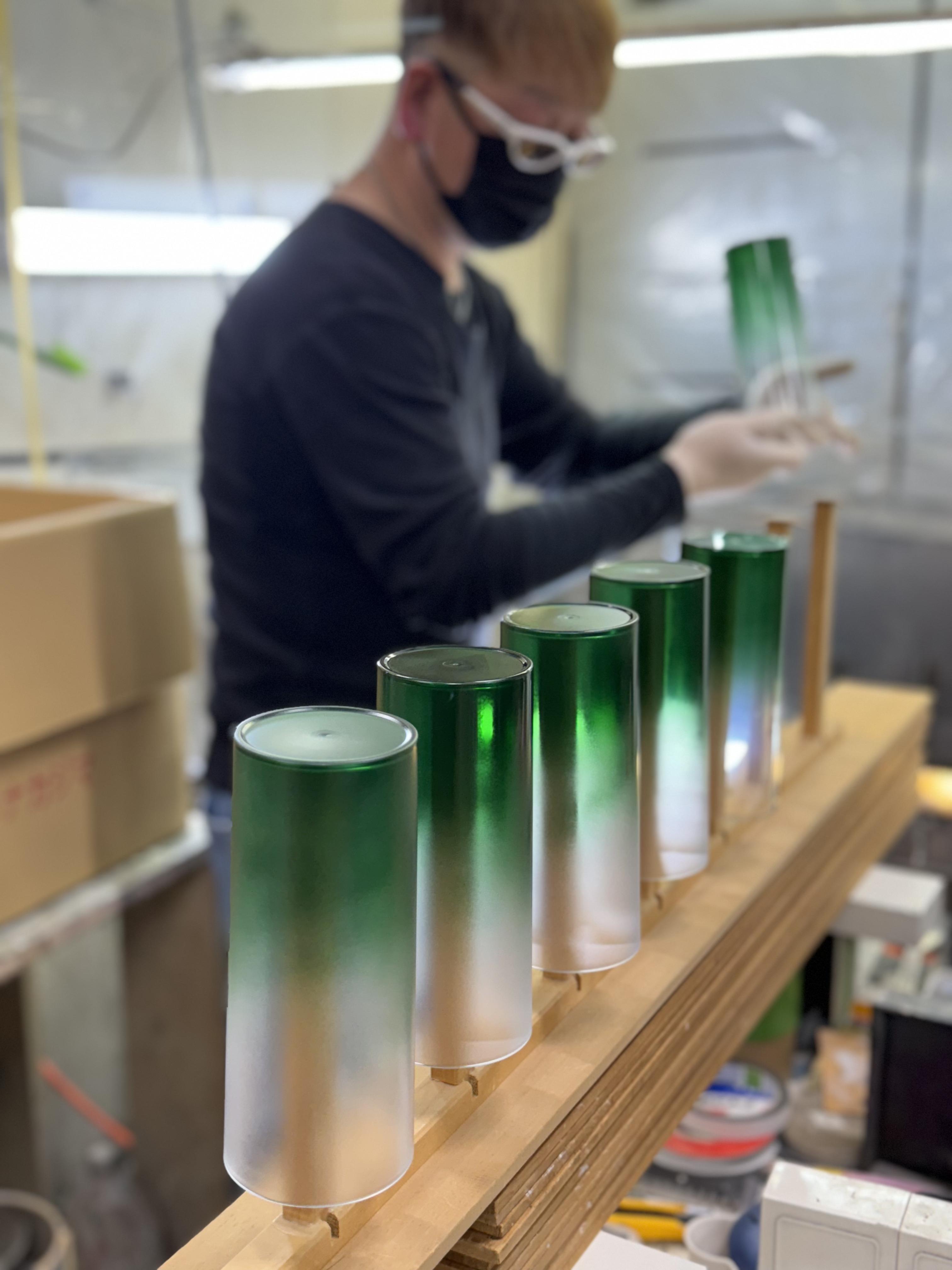 伝統的な職人による製造・塗装を施した「マッティーボトル」片手で持てるようなシンプルな形状ながら家庭や職場で、自然にすっと心地よく馴染む。そこにあるだけで癒しにみちびくような佇まいを目指しました。