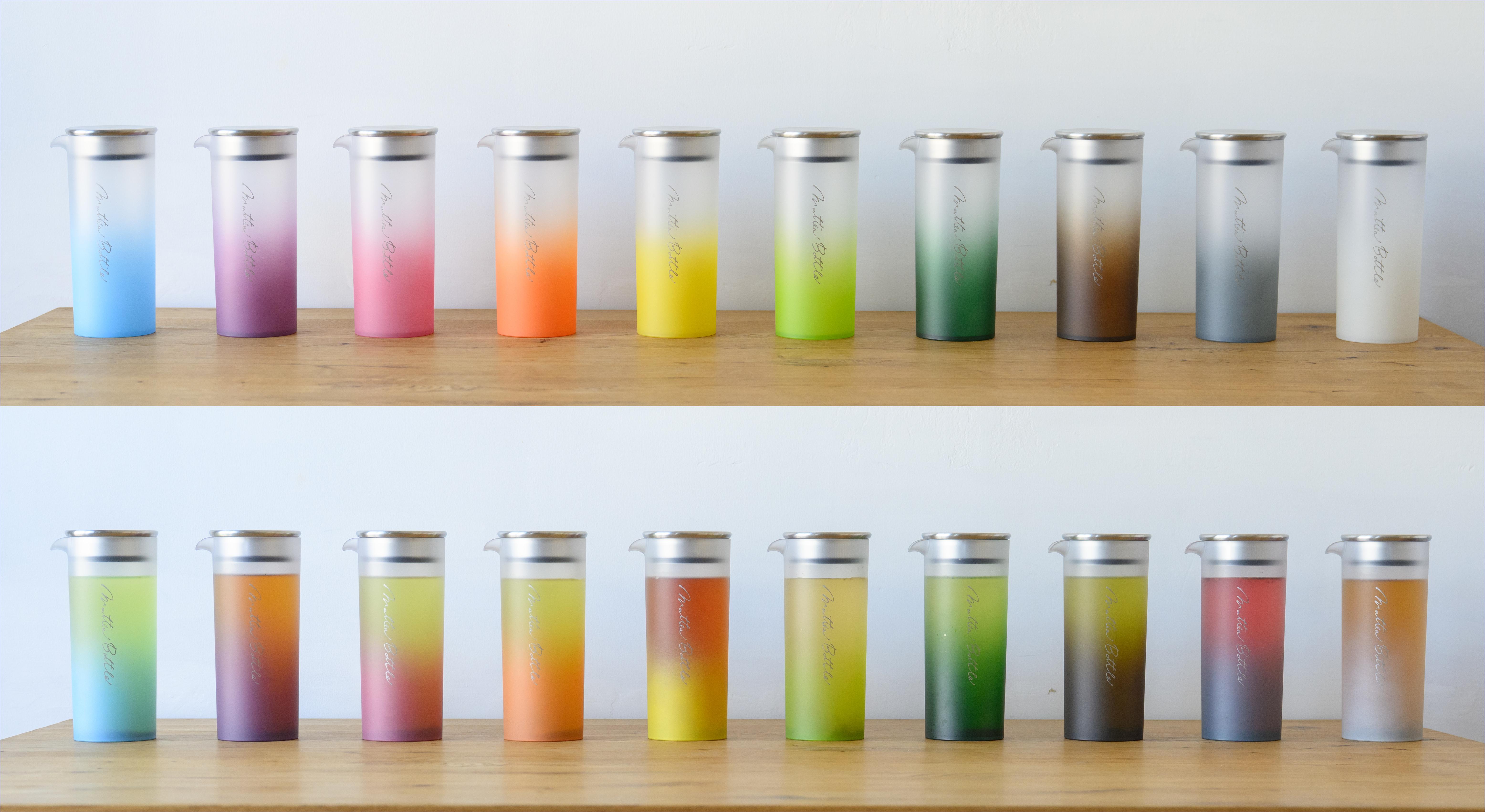 お茶とボトルの組み合わせでさまざまな色の変化も楽しめます。